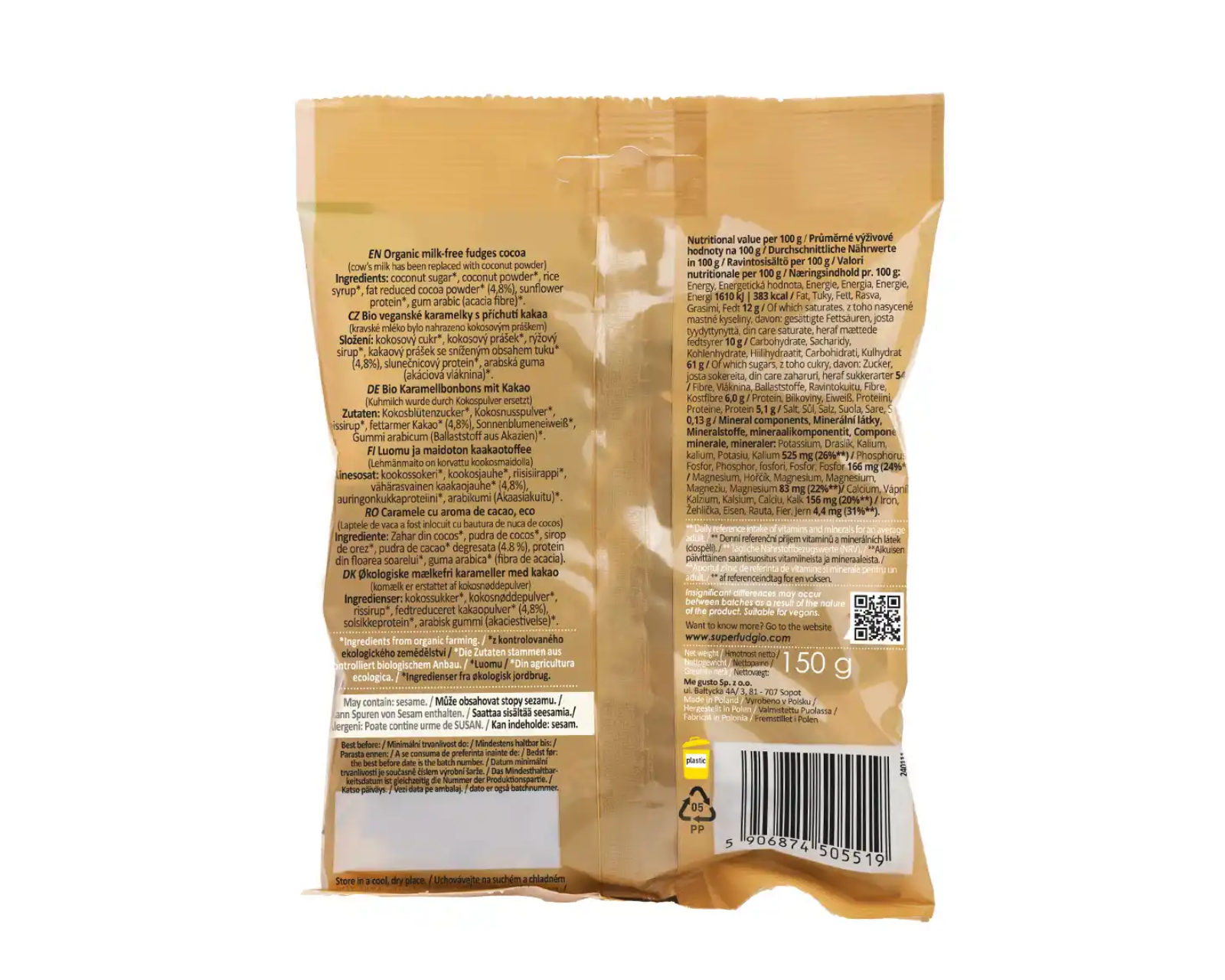 Be glitimo, be palmių aliejaus, be pieno, be laktozės.