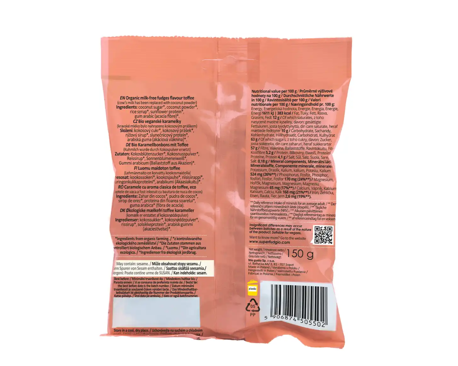 Be glitimo, be palmių aliejaus, be pieno, be laktozės.